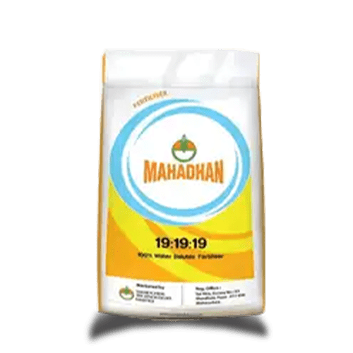 Mahadhan 19:19:19 Fertilizer provides a perfectly balanced mix of essential nutrients (NPK) to support healthy plant growth. Ideal during the vegetative stage, it promotes strong roots, lush foliage, and overall crop vigor. This water-soluble formula ensures quick absorption, making it suitable for all crops through foliar spray or drip irrigation.